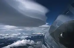 W specyficznych miejscach obszaru falowania powietrza tworzą się charakterystyczne chmury Altocumulus lenticularis.
