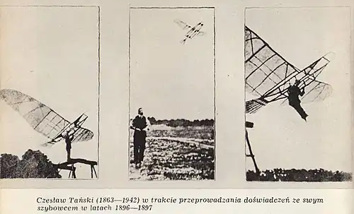 Czesław Tański był artystą malarzem, ale jego największą pasją była awiacja. Już od 1893 roku zajmował się budową własnych udanych modeli latających o napędzie gumowym. Pod wpływem wiadomości o próbach lotów ślizgowych, jakich dokonywał Otto Lilienthal, zbudował w 1895 swój własny szybowiec, który nazywał "Lotnią"[1]. Pierwsze nieudane próby lotów podjęte w 1895 roku na podwarszawskich polach zakończyły się roztrzaskaniem konstrukcji[2].
