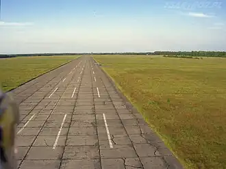 W roku następnym przystąpiono do budowy betonowej drogi startowej wraz z drogami kołowania i płytami postoju samolotów. W 1954 wybudowano także port lotniczy, hangar oraz pozostałe obiekty niezbędne do prawidłowego funkcjonowania obiektu. W latach późniejszych uzupełniano infrastrukturę o dodatkowe budynki np. domek pilota. Na początku stacjonował tu pułk szkoleniowy, następnie 61 Lotniczy Pułk Szkolno-Bojowy(Biała Podlaska). Od 4 listopada 1977 aż do końca, tj. 31 grudnia 2000 stacjonował tu 47 Szkolny Pułk Śmigłowców. Później (według stanu na 2006) należało do Agencji Mienia Wojskowego[3]. Podjęto także starania o utworzenie tam miasteczka filmowego, podpisując w 2007 umowę w tej sprawie (ostatecznie inwestycja nie doszła do skutku)[2].
