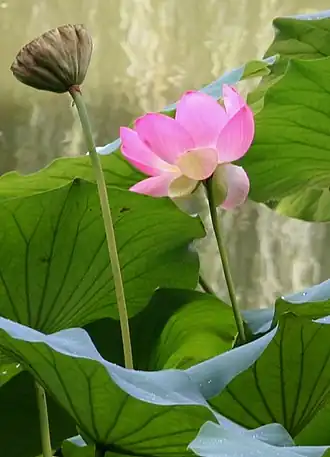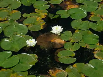 Kilka gatunków lotosa orzechodajnego i grzybieniowate (grzybienie (Nymphaea), rozłożnia (Euryale), grążel (Nuphar), wiktorii królewskiej a także ogród bagienny z taro (Colocasia esculenta), ornamentalną trzciną cukrową (Saccharum officinarum) i ciborą papirusową.