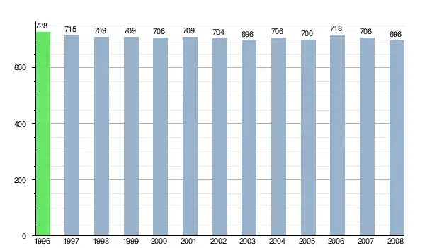 Według danych z dnia 31 grudnia 2012, wieś zamieszkiwało 678 osób, w tym 353 kobiety i 325 mężczyzn[7].