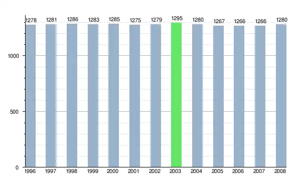 Według danych z dnia 31 grudnia 2012, wieś zamieszkiwały 1332 osoby, w tym 682 kobiety i 650 mężczyzn[7].