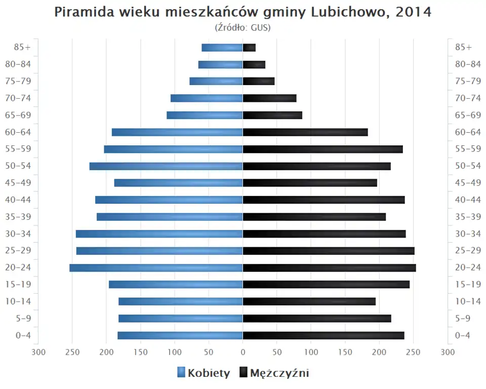 - Piramida wieku mieszkańców gminy Lubichowo w 2014 roku[1].