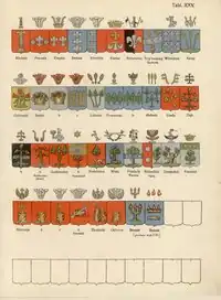 Lubocki III: Inny klejnot: łuk złoty cięciwą do góry, w którym na łęczysku trzy strzały srebrne w wachlarz.