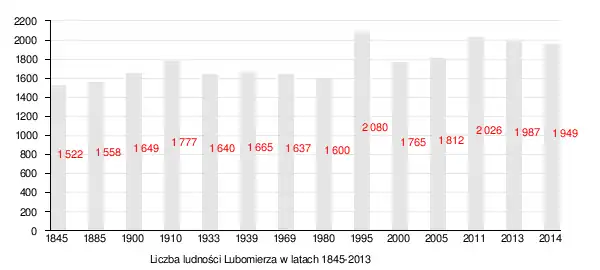 - ↑ Lubomierz w liczbach [online], Polska w liczbach [dostęp 2016-01-06], liczba ludności na podstawie danych GUS.