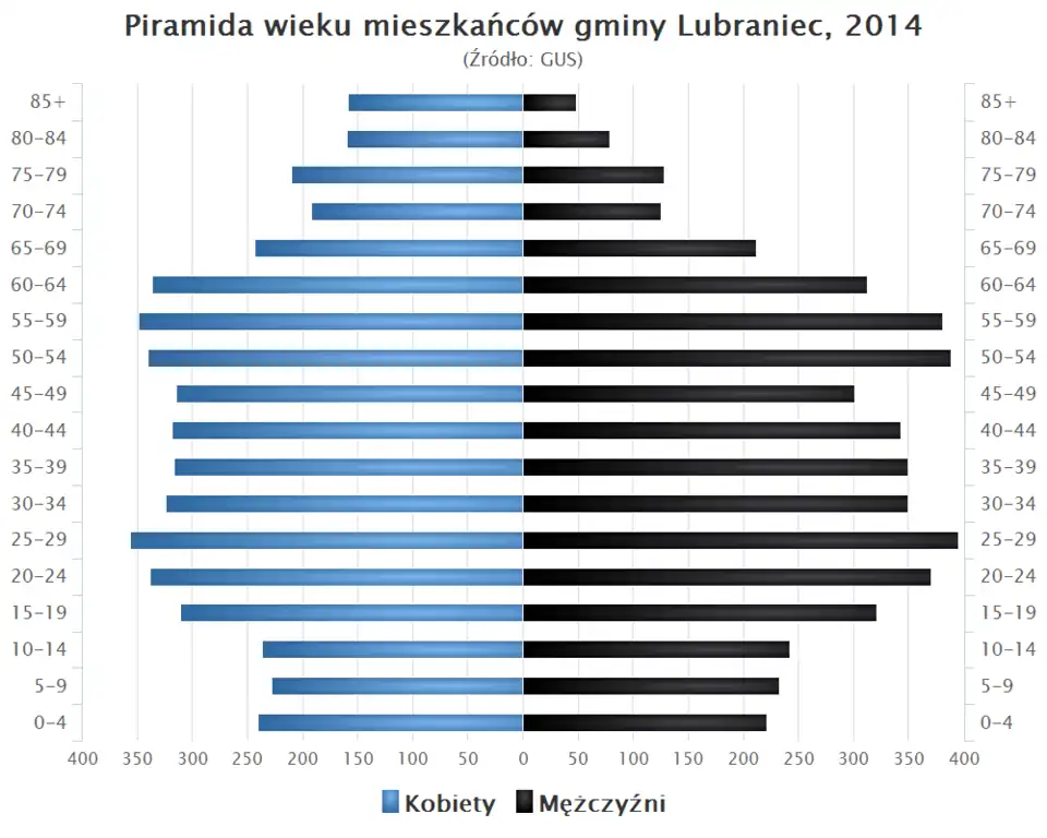 - Piramida wieku mieszkańców gminy Lubraniec w 2014 roku[1].