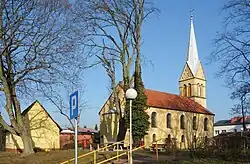 - kościół ewangelicki, od 1945 roku rzymskokatolicki parafialny pod wezwaniem św. Jana Chrzciciela, z 1848 roku, będący neoromańską budowlą murowaną, z jedną nawą, półkolistą absydą od zachodu i wysmukłą wieżą od wschodu. Kościół jest siedzibą tutejszej parafii św. Jana Chrzciciela[73].