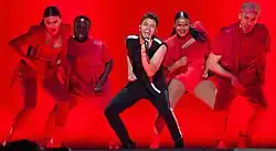 ![]() Luca Hänni w programie ZDF Fernsehgarten w Lerchenbergu (2018) | |