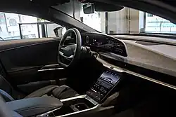 W kabinie pasażerskiej znalazły się cztery niezależne fotele, z czego tylny rząd siedzeń został wysunięty za linię drzwi w celu wygospodarowania więcej miejsca dla pasażerów z rozbudowanym, regulowanym kątem nachylenia[5]. Deska rozdzielcza utrzymana została z kolei w cyfrowo-minimalistycznej estytyce, z dwuramiennym kołem kierownicy oraz chowanym, wysuwanym dotykowym ekranem do sterowania m.in. panelem klimatyzacji i głównymi funkcjami pojazdu[6]. Przed kierowcą znalazł się obszerny, zakrzywiony 34-calowy ekran pełniący funkcję cyfrowych zegarów dla kierowcy oraz centralnego, dotykowego systemu multimedialnego w swojej prawej części[7].