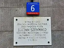 - ↑ Stanisław Ciepłowski: Wpisane w kamień i spiż. Inskrypcje pamiątkowe w Warszawie XVII–XX w.. Warszawa: Argraf, 2004, s. 129. ISBN 83-912463-4-5.