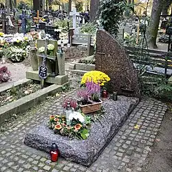 - granitowy nagrobek na cmentarzu Centralnym w Szczecinie (projektu arch. Magdaleny Jacobson-Ostrowskiej)