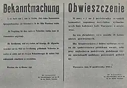 - ↑ Hahn podpisywał obwieszczenia jako anonimowy „Komendant [lub Dowódca] SD i policji bezpieczeństwa na dystrykt warszawski”.