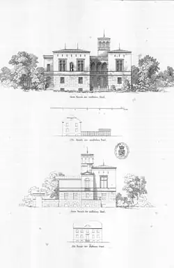 - plany przebudowy willi Illaire (dawnego domu ogrodnika dworskiego Vossa, ukończony w 1846)