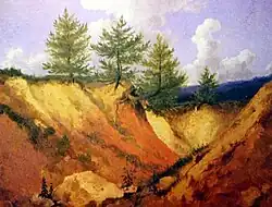 W latach 50. wędrował też wraz z innymi malarzami po kraju, malując pejzaże. Już w 1858 roku wziął po raz pierwszy udział w dwóch wystawach malarskich – w Krakowie oraz w Krajowej Wystawie Sztuk Pięknych w Warszawie. W latach 1860, 1862, 1863, 1869 i 1874 wystawiał swoje prace w Towarzystwie Zachęty Sztuk Pięknych w Warszawie[2].