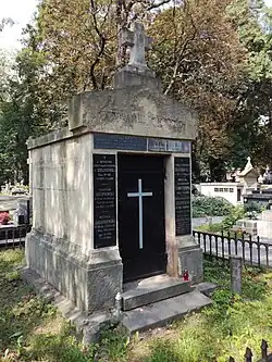 - ↑ Lista osób zasłużonych pochowanych na Cmentarzu Rakowickim (1803–1939). W: Karolina Grodziska–Ożóg: Cmentarz Rakowicki w Krakowie. Kraków: Wydawnictwo Literackie, 1987, s. 151. ISBN 83-08-01428-3.