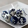 | Lukier średni/konsystencja luźnego kremu | do tworzenia wzorów na ciastkach. Najczęściej wyciskany przez małe worki cukiernicze bez zastosowania końcówek cukierniczych (tylek) – stosowany w przypadku małych średnic tylek poniżej nr 1. | |