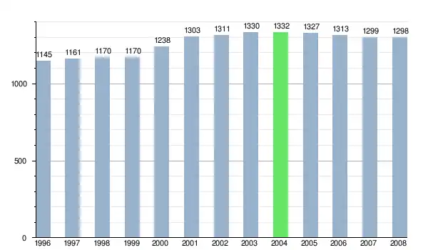 Według danych z dnia 31 grudnia 2012, wieś zamieszkiwało 1337 osób, w tym 700 kobiet i 637 mężczyzn[6].