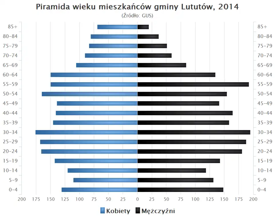 - Piramida wieku mieszkańców gminy Lututów w 2014 roku[1].