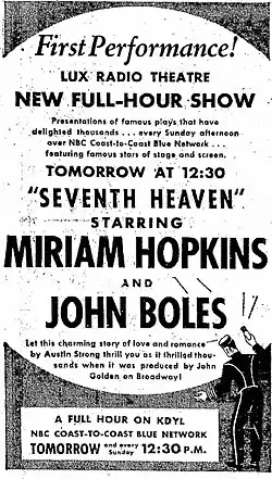 - ↑ Lux Radio Theatre. [dostęp 2019-12-28]. [zarchiwizowane z tego adresu (2015-09-24)]. (ang.).