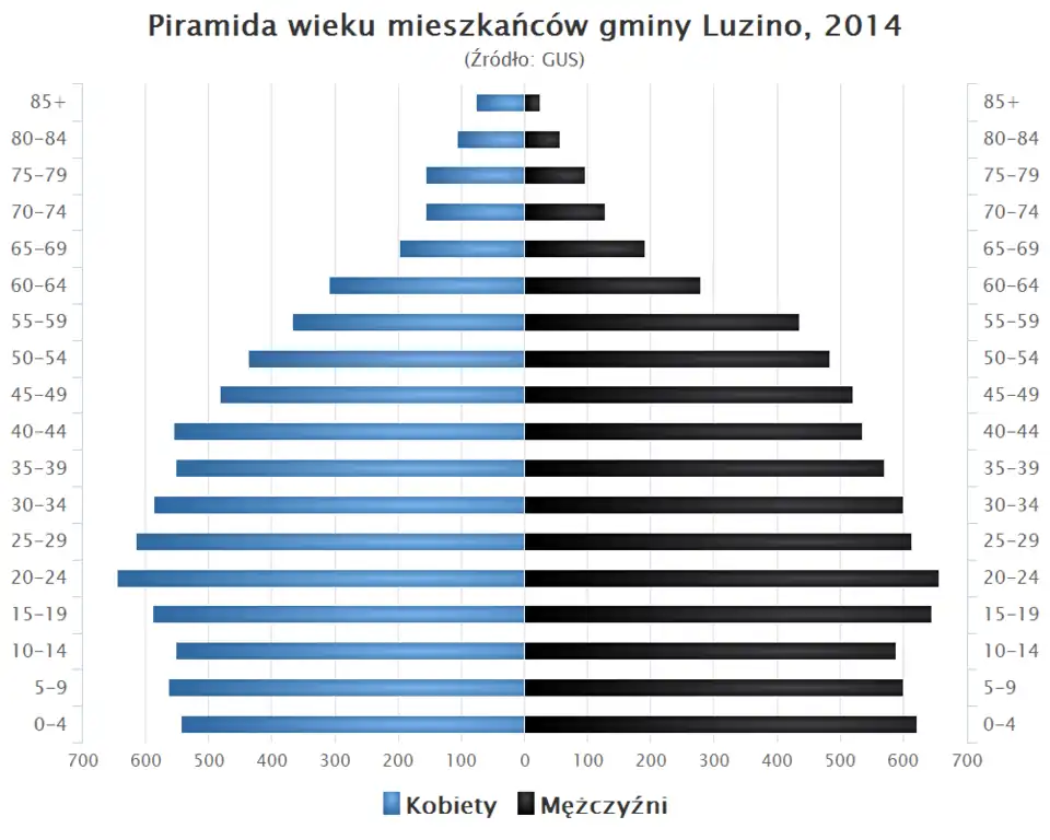 - Piramida wieku mieszkańców gminy Luzino w 2014 roku[3].