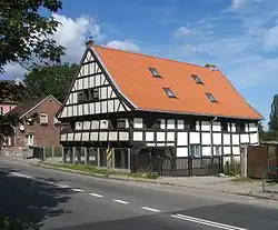 - ↑ Rejestr zabytków nieruchomych. kobidz.pl. [dostęp 2017-05-26]. [zarchiwizowane z tego adresu (2017-08-07)]. Cytat: dom podcieniowy, ul. Jedności Robotniczej 297, szach., poł. XVII, nr rej.: 73 z 18.12.1959