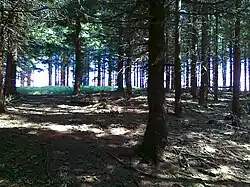 ![]() Widok ze szlaku rowerowego na stoku góry Malý Děd na szczyty Lysý vrch i Lysý vrch–J (2012 rok) | |