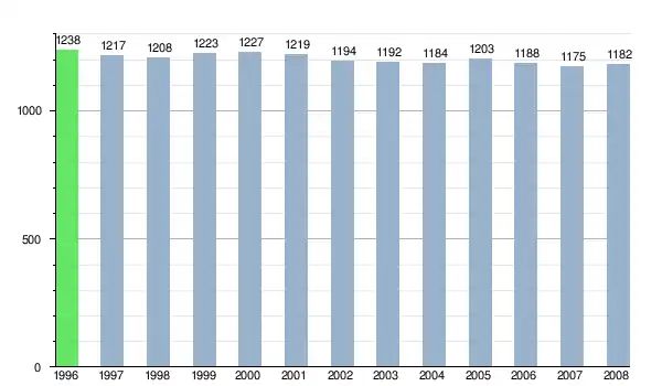 Według danych z dnia 31 grudnia 2012, wieś zamieszkiwało 1176 osób, w tym 613 kobiet i 563 mężczyzn[6].