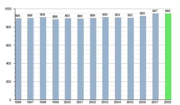 Według danych z dnia 31 grudnia 2012, wieś zamieszkiwało 985 osób, w tym 496 kobiet i 489 mężczyzn[6].