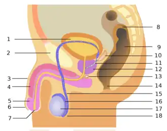 - 1 2 Męski układ płciowy, rozrodczy. Anatomia człowieka. [dostęp 2014-09-08]. [zarchiwizowane z tego adresu (2014-02-22)].