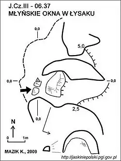 - 1 2 3 4 Jerzy Zygmunt, Krzysztof Mazik, Młyńskie Okna w Łysaku, [w:] Jaskinie Polski [online], Państwowy Instytut Geologiczny – Państwowy Instytut Badawczy [dostęp 2019-08-18].