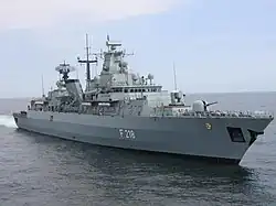 | Fregatte 124 | Sachsen | 3 | 2002–2006 | 5690 | 143,00 | 17,44 | 4,86 | OTO Melara 76/62 | RIM-162, RIM-66, RIM-116 | Harpoon | ![]() | |
