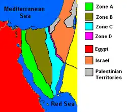 - Strefę C (Zone C) – pomiędzy Linią B a granicą egipsko-izraelską. Podzielona na 4 sektory:
