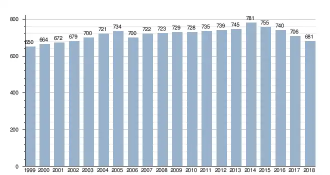 Liczba mieszkańców gminy Maçanet de Cabrenys w latach 1999–2018