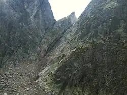 ![]() Mała Spąga widoczna między siodłami Czerwonej Ławki od strony Dolinki Lodowej | |