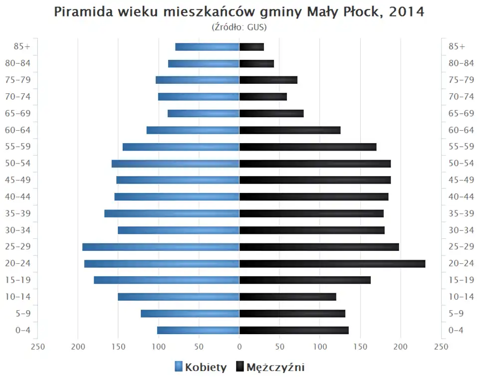 - Piramida wieku mieszkańców gminy Mały Płock w 2014 roku[1].