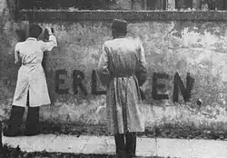 - modyfikacja sloganu „Deutschland siegt an Allen Fronten” (Niemcy zwyciężają na wszystkich frontach). Wystarczyło zmienić s na l w drugim słowie, by uzyskać odwrotny tekst: „Deutschland liegt an Allen Fronten” (Niemcy leżą na wszystkich frontach)[1].