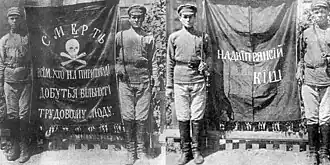 - ↑ Юрий Кравец, Знамена повстанческой армии Н. Махно. 1918–1921 г. [online], makhno.ru [zarchiwizowane z adresu 2020-09-17] (ros.).