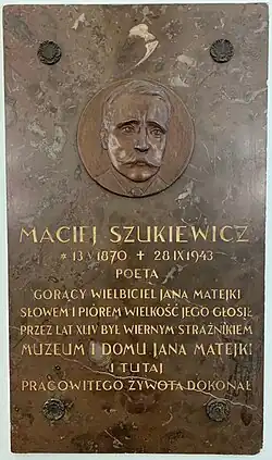 - Tablica upamiętniająca postać Macieja Szukiewicza, Muzeum Narodowe w Krakowie – Dom Jana Matejki, ul. Floriańska 41.