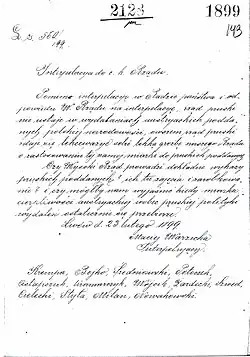 - Archiwum Państwowe Ukrainy we Lwowie – 2 interpelacje