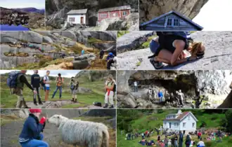 - Brufjell. web.archive.org. [zarchiwizowane z tego adresu (2017-09-11)]. - jaskinie oraz platforma na końcu szlaku turystycznego, umieszczona 10 m nad poziomem morza, utworzona przez fale morskie