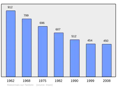 Według danych na rok 1990 gminę zamieszkiwały 512 osoby, a gęstość zaludnienia wynosiła 16 osób/km² (wśród 747 gmin Limousin Maisonnais-sur-Tardoire plasuje się na 253. miejscu pod względem liczby ludności, natomiast pod względem powierzchni na miejscu 145.).