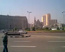 Plac utworzony został na miejscu brytyjskich baraków Kasr an-Nil. W latach 60. XX w., kiedy Naser realizacji centralizacji w stylu ZSRR, wzniesiono przy placu dwa bloki dla urzędników oraz kilka dworców, które obsługują połączenia z każdą częścią kraju. W latach 70. XX w., gdy Anwar as-Sadat odrzucił propagowaną przez poprzednika doktrynę tzw. socjalizmu arabskiego na rzecz polityki otwartych drzwi (infitah) w stosunku do kapitalizmu zachodnioeuropejskiego przy placu wybudowano liczne szklane wieżowce.