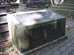 - ↑ Cmentarze m. st. Warszawy. Cmentarze żydowskie. Warszawa: Rokart, 2003. ISBN 83-916419-3-7. – tu jednak błędnie kwatera 10 rząd 1