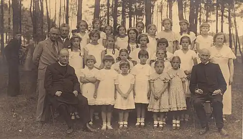- ↑ Otwarta została 20 października 1930 i znajdowały się w niej dwie izby lekcyjne oraz mieszkanie nauczycielskie. Warunkiem funkcjonowania szkół polskich w Niemczech była dostateczna liczba uczniów, wobec czego ks. Grochowski sprowadził do Głubczyna kilka wielodzietnych rodzin polskich zapewniając im zatrudnienie i zamieszkanie