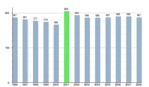 Zmiany liczby ludności w miejscowości Malá Lodina od 1996 roku.