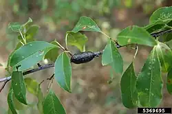 Larwy żerują na wielu gatunkach drzew i krzewów, szczególnie z rodziny różowatych (np. na wiśniach, jabłoniach czy czeremsze amerykańskiej)[1].