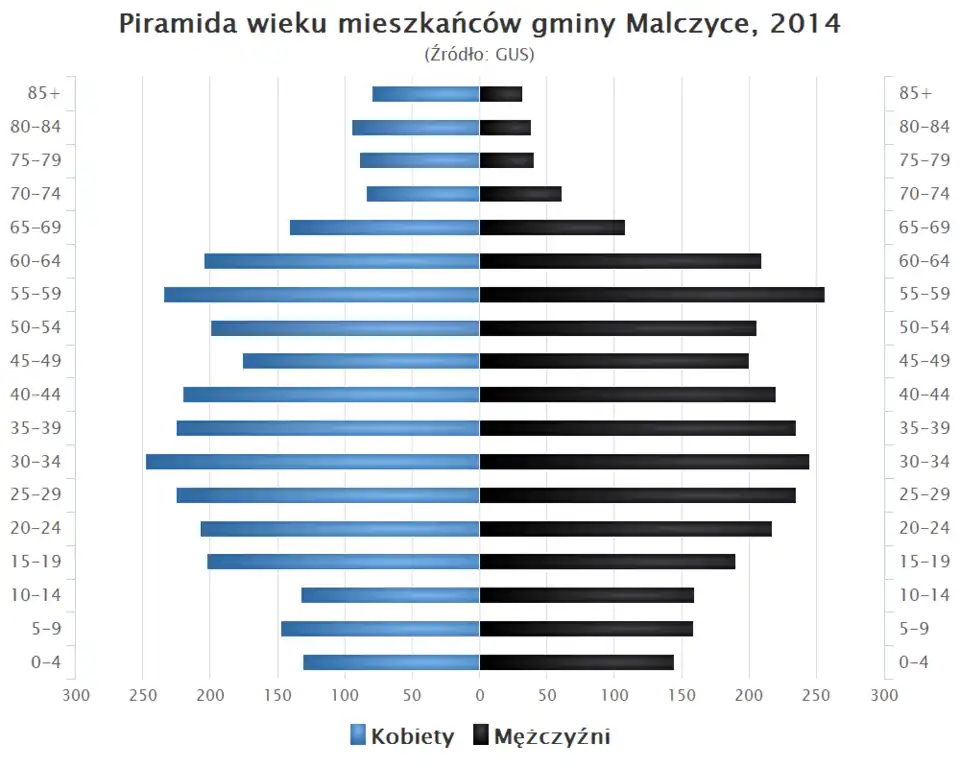 - Piramida wieku mieszkańców gminy Malczyce w 2014 roku[5].