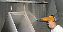 Malowanie proszkowe – polega na nakładaniu naelektryzowanych cząstek (20–100 μm) farby proszkowej na powierzchnię przewodzącą np. metalu. Osadzona warstwa proszku utrzymuje się na powierzchni malowanego detalu dzięki siłom elektrostatycznym.