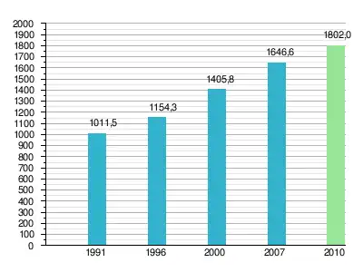 - Wykres liczby ludności na podstawie danych zebranych przez Instituto Brasileiro de Geografia e Estatística (w tys.)