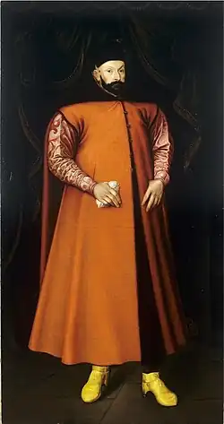 ![]() | Portret Zygmunta III Wazy | Olej na płótnie, 125 x 95 cm[29], po 1591[30] | Muzeum Historii Sztuki w Wiedniu[9], zdaniem E. Błażewskiej został wykonany w związku z pertraktacjami dotyczącymi małżeństwa monarchy z Anną[31], choć wątpliwe by był tym samym co przesłany do Wiednia w 1592 roku, z okazji zaręczyn[30]. |